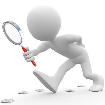 Man with magnifying glass looking for coins